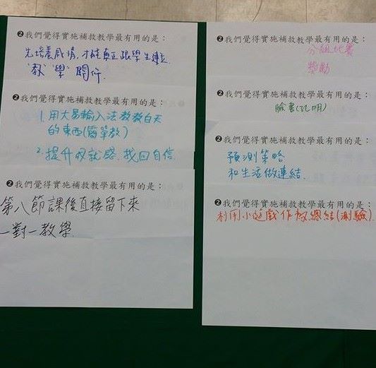 今天(9/24)則帶了兩個小實作:想一想實施補救教學最困難處,或是有什麼好點子,大家腦力激盪一下。與會老師都很認真參與討論喔。